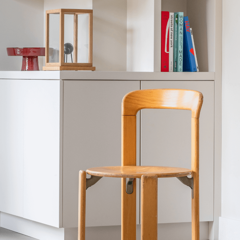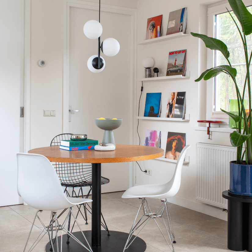 Op dit moment zou ik mijn interieurstijl omschrijven als kleurrijk en speels, met een duidelijke liefde voor designklassiekers. Mijn achtergrond in architectuur zie je nog altijd terug in de strakke lijnen en minimalistische vormen van de meubels en accessoires die ik kies. Voor mijn nieuwe appartement merk ik dat ik toe ben aan een nieuwe twist: ik wil de levendigheid van kleur behouden, maar die meer gaan combineren met natuurlijke materialen zoals hout en natuursteen. Voor mijn nieuwe woning neig ik meer naar Mid-Century invloeden, een stijl die tijdloos en warm aanvoelt, en toch heel eigentijds blijft.