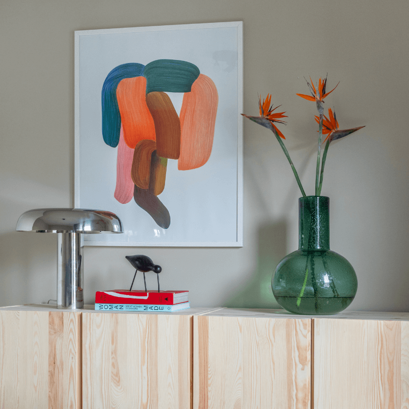 • Balans is de sleutel. Combineer rustige en ingetogen elementen met uitgesproken items, zodat er een harmonieus geheel ontstaat. Zo voorkom je dat het te druk of juist te vlak wordt, en creëer je een interieur dat uniek is én rust uitstraalt. Kies je bijvoorbeeld voor een kleurrijk kunstwerk, laat dan de tinten uit dat kunstwerk subtiel terugkomen in andere elementen van de ruimte. Dat verzacht de uitspatting en maakt het geheel samenhangend en in balans.